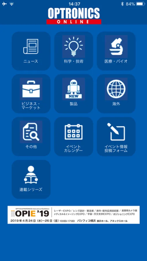 光技術情報WEB「オプトロニクスONLINE」がアプリになりました。毎日更新される光業界関連ニュースはもちろん,雑誌「月刊OPTRONICS」に掲載されているコンテンツもスマートフォンやタブレットで気軽に読むことができます。さらに,展示会やイベントなどをPUSH通知で受け取ることもできますので,大事な情報を漏らす心配もありません。研究にビジネスに,本アプリを是非お試しください。