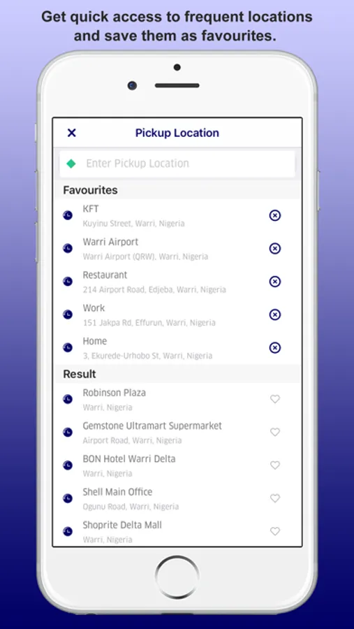 1. Mark drivers as favorites at the end of a ride and the Pickmeup app will always try to match you with one of your favorite drivers. If a favourite driver is around then you can actually select your preferred driver for the ride.