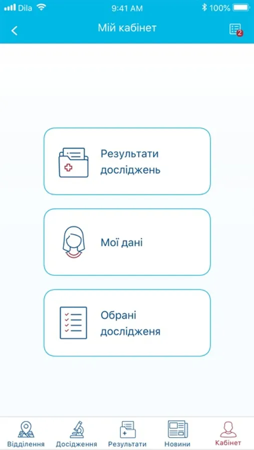Мобільний додаток МЛ ДІЛА розроблений для IOS пристроїв і стане в нагоді всім, хто піклується про своє здоров'я. Ви отримаєте повноцінний доступ до необхідної інформації про лабораторії, новини компанії та повного переліку лабораторних послуг. Тепер Ви з легкістю зможете: