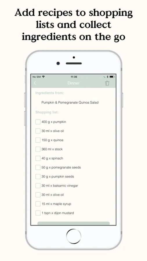 - Generate and save shopping lists from recipes in the app
