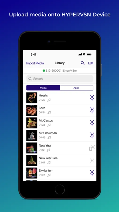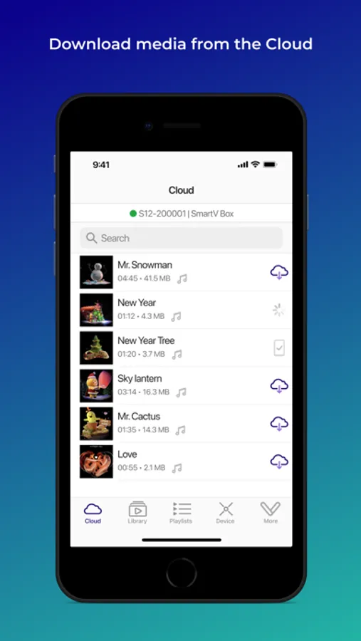 Search for the most suitable media files using the Cloud CMS, then preview and download the files to your mobile phone for later playback on HYPERVSN Solo.
