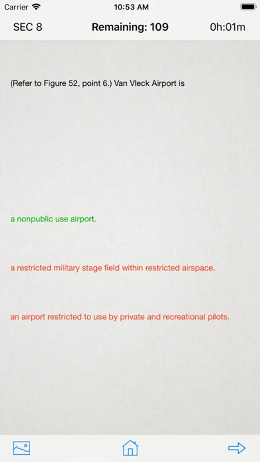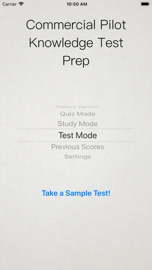 Test Mode - Simulates the test you are going to take at a FAA Knowledge Test Center. In this mode, you are asked 100 questions that are pulled from the entire question bank.