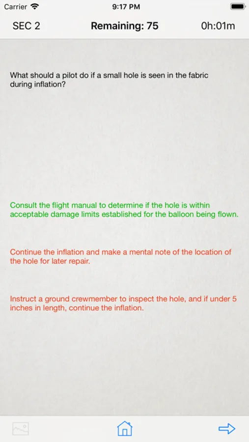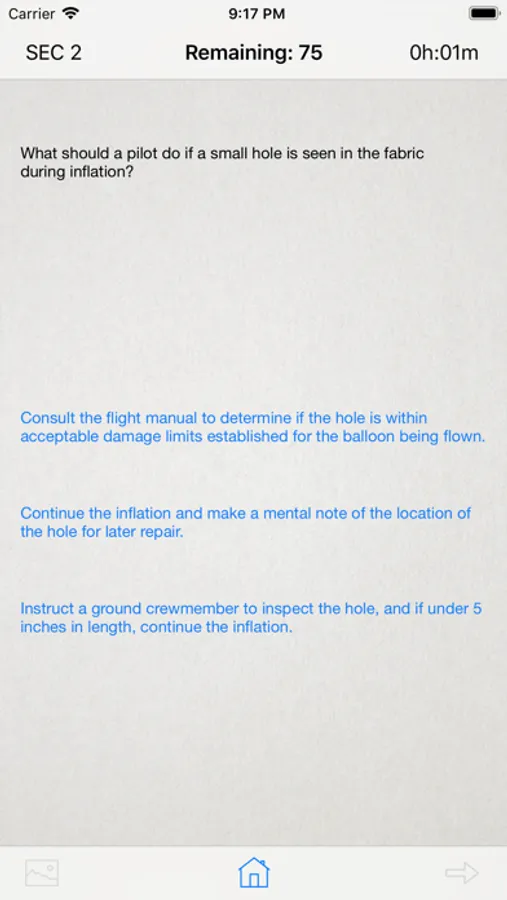 Test Mode - Simulates the test you are going to take at a FAA Knowledge Test Center. In this mode, you are asked 100 questions that are pulled from the entire question bank.