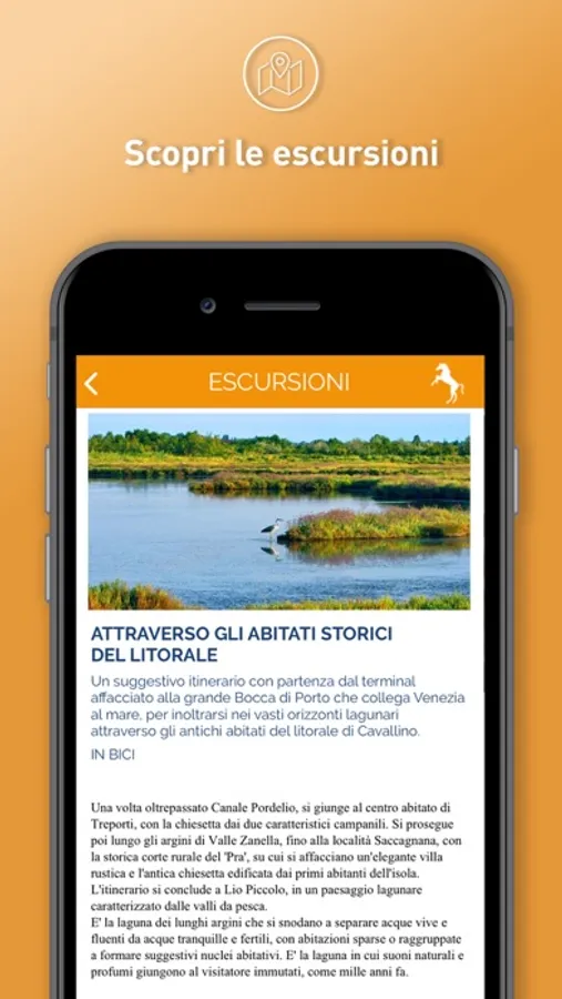 Con l'App Cavallino avrai tutte le informazioni a portata di click durante la tua vacanza. Grazie al servizio delivery potrai ordinare dal ristorante e market comodamente dal tuo alloggio. E in più puoi scoprire facilmente le attività dell'animazione, le escursioni e i vari servizi del Camping Village. Scopri tutte le funzionalità: scarica l'App.