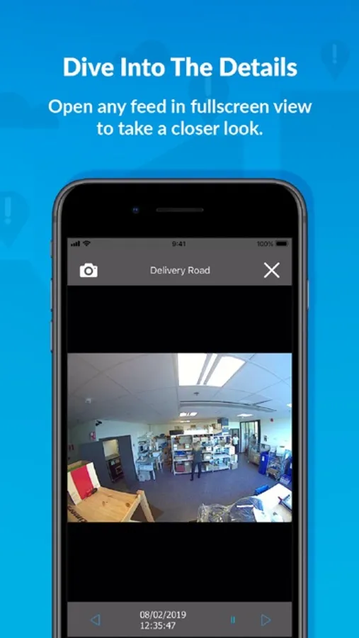 Pan, tilt and zoom your compatible cameras using simple swipe, pinch and tap gestures when you need to investigate a scene. Easily take a snapshot and save it to your camera roll once you’ve found what you’re looking for.