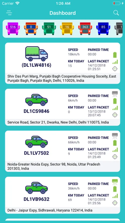 Truckers - TSK provide real time Vehicle Tracking to track your vehicle. With this you can always monitor your vehicle current state like vehicle position, vehicle state(Start/Stop/Move), Speed, A/C status.