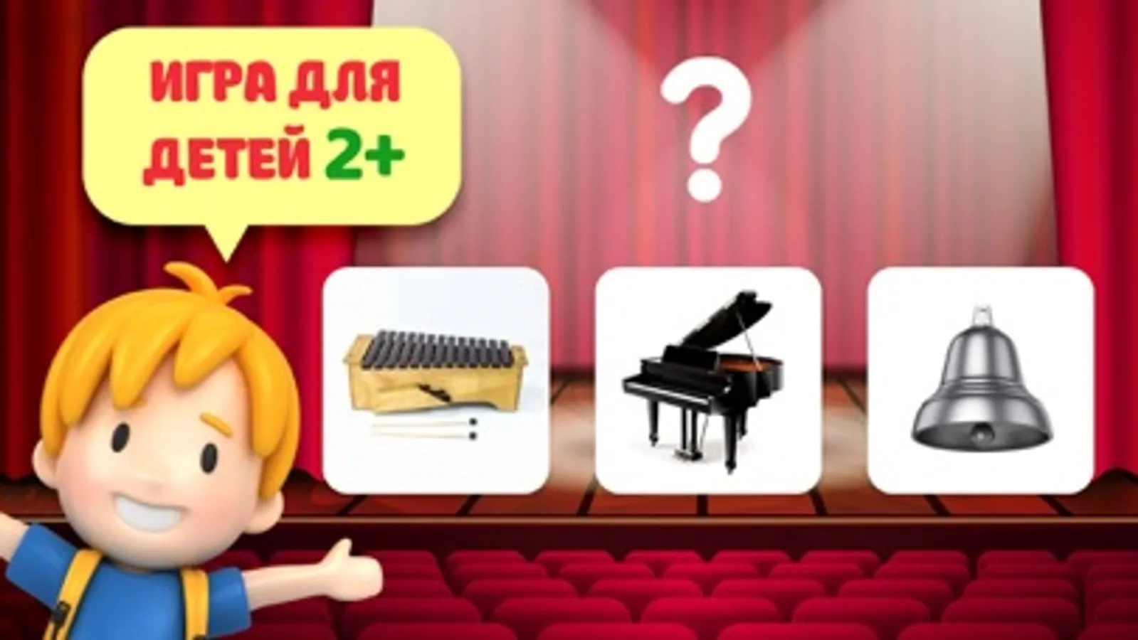 Мы подобрали 12 великих музыкальных произведений Моцарта, Чайковского, Бетховена, Прокофьева, Штрауса, Паганини и других. Каждую композицию сопровождает озвучивание названия и имени композитора, а также забавный персонаж, который визуально поможет быстрее запомнить эти названия.