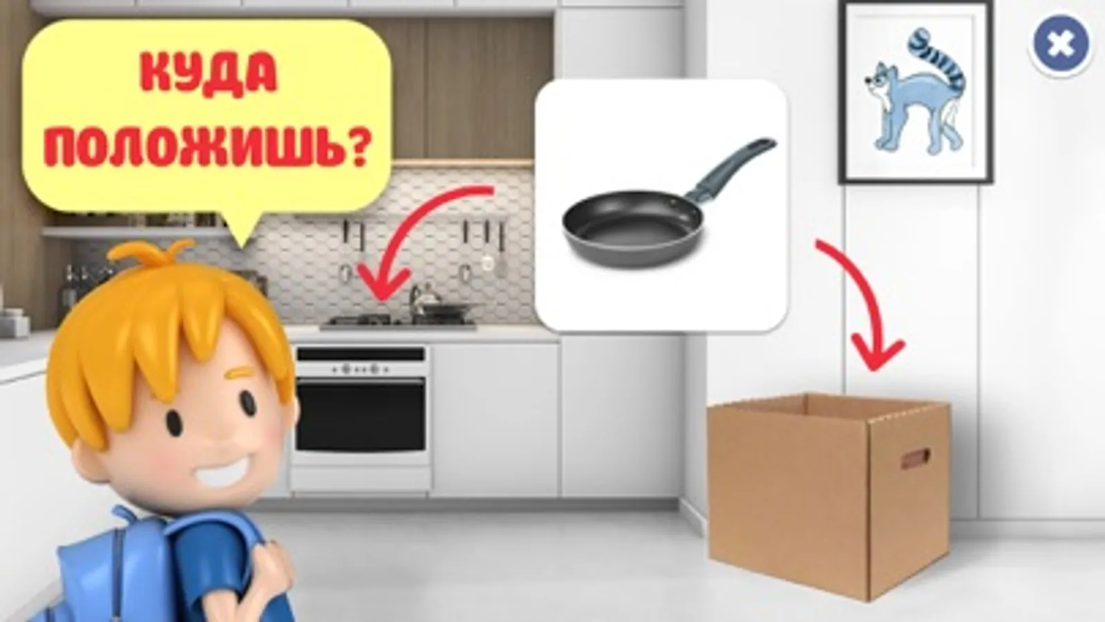 Для этого игра знакомит ребенка с 6-тью основными группами предметов, которые окружают нас ежедневно – мебель, транспорт, игрушки, посуда, обувь, одежда.