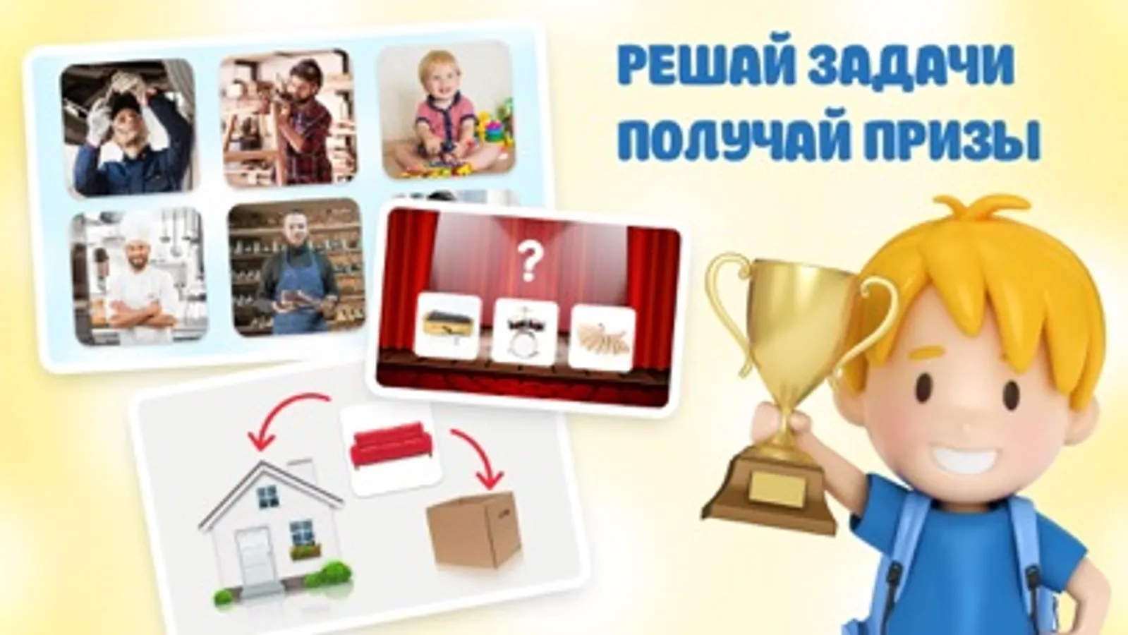 Для этого игра знакомит ребенка с профессиями и просит детей помочь мастерам (швея, мебельщик, сапожник, повар, механик) собрать предметы, с которыми они связаны в своей работе.