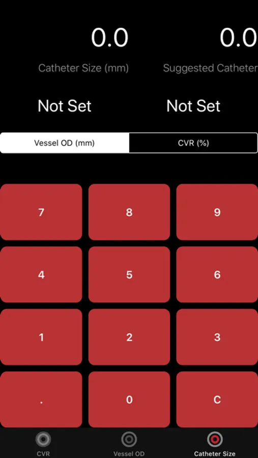 This App does NOT collect, record, store, or transmit any information entered, and is used to provide the mathematical catheter to vessel area-based calculations only.