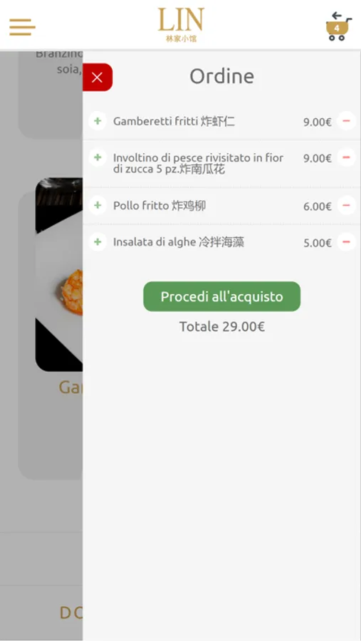 L'applicazione Ristorante Lin permette ai clienti di ordinare direttamente. Nell'applicazione sono presenti le immagini, i prezzi e la descrizione dei piatti del Ristorante Lin.
