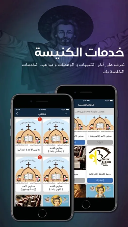 + خدمات الكنيسة : من خلالها يتم معرفة اخر تنبيهات الخدمة و الوعظات ( ميديا الصوت ) و ايضا تتيح لامناء الخدمة فقط من الدخول الى بيانات المخدومين لسهولة عملية الافتقاد. و يمكن ايضا معرفة تفاصيل الخدمة ، مواعيدها و التواصل مع امناء الخدمة.