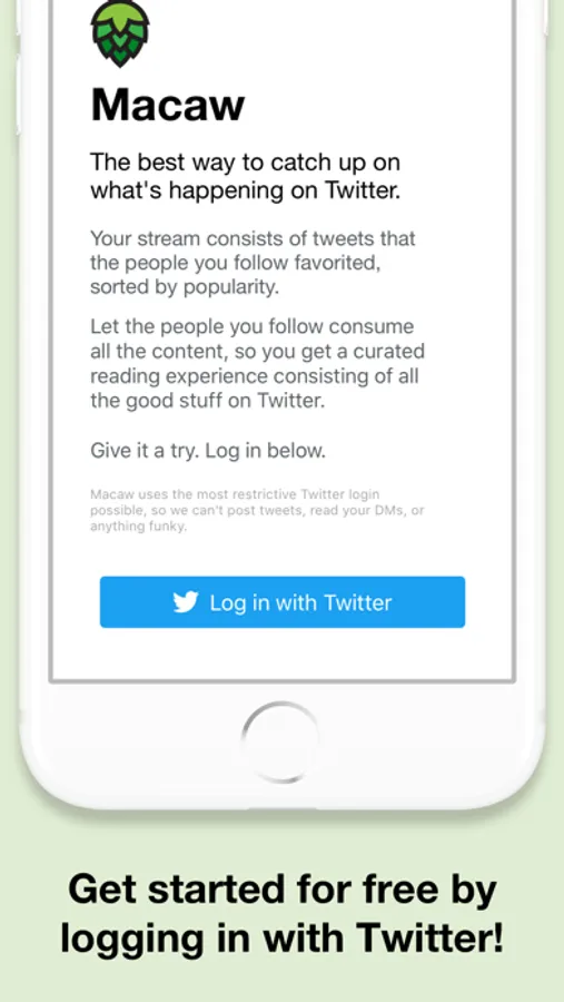 Payment will be charged to iTunes Account at confirmation of purchase. Subscription automatically renews unless auto-renew is turned off at least 24-hours before the end of the current period. Account will be charged for renewal within 24-hours prior to the end of the current period, for the same price as you choose above. You may manage your subscription or turn off auto-renewal by going to your Account Settings after purchase. Visit macawfortwitter.com/terms or macawfortwitter.com/privacy for more information.