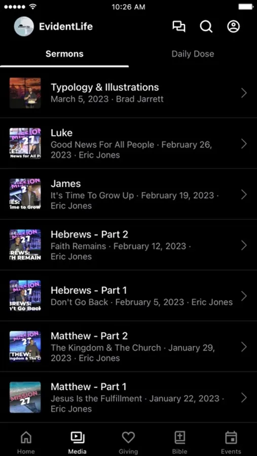 The Evident Life Church App is the perfect tool for an interactive experience at Evident Life Church. Features such as sermons, note-taking, prayer wall, and bible-reading plans are all available. Other features such as giving options, volunteer and event sign-ups are also provided.