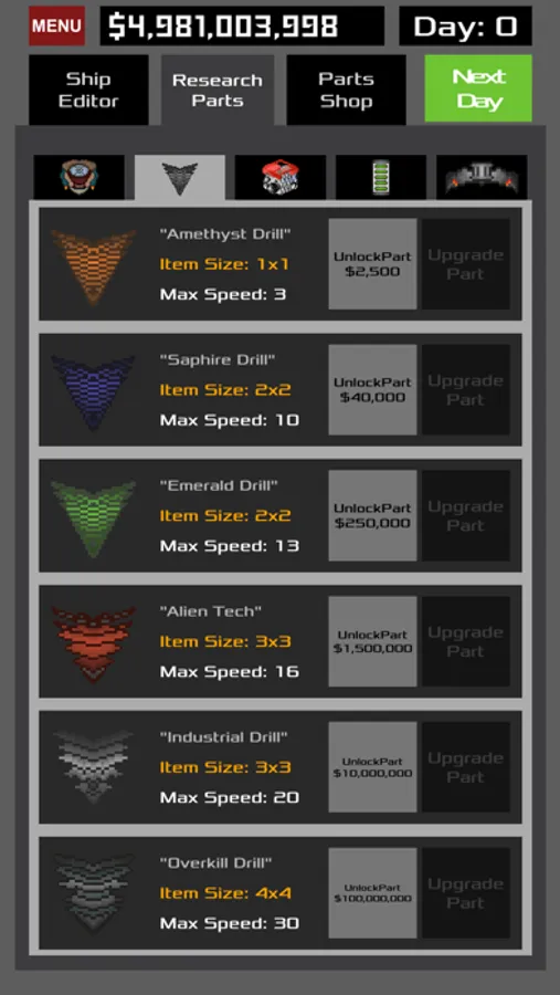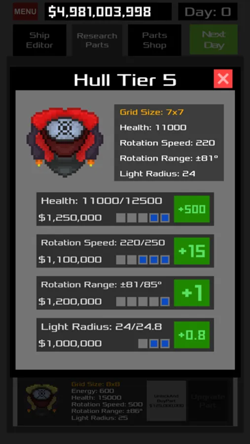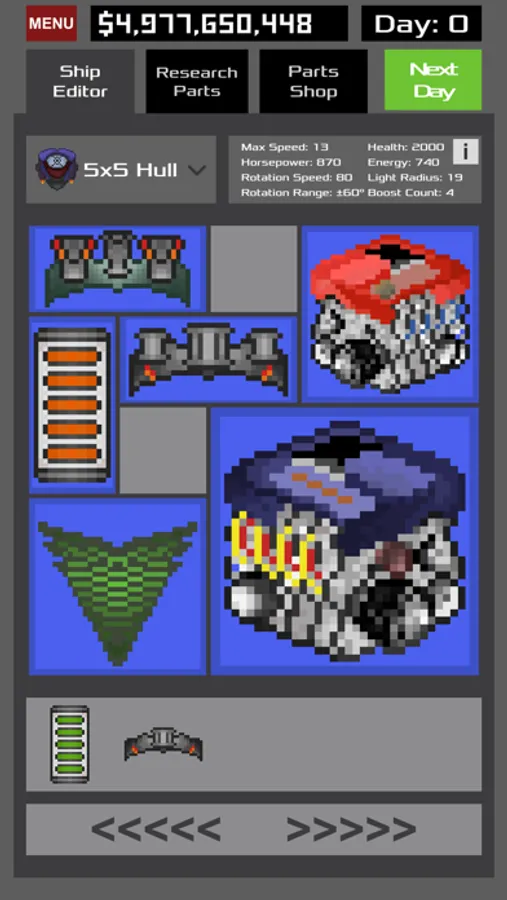 Unlock better ships that can fit more engines, boosters, and batteries. Unlock 6 ships, 25 parts, and 243 upgrades.