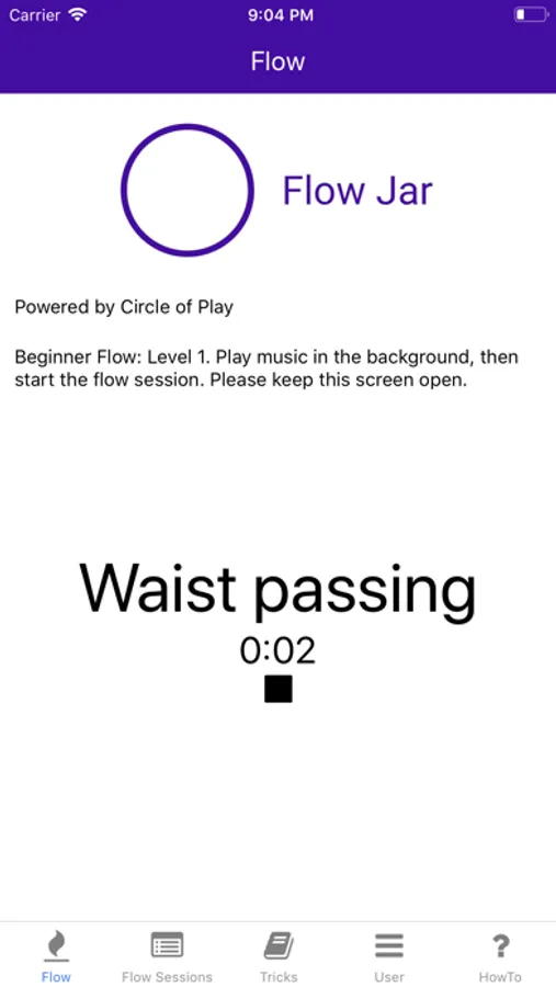 Flow Jar is an app that helps you improve your hula hooping flow. Play music in the background while the app instructs different moves to familiarize yourself with transitions and for you to get to know your hoop.