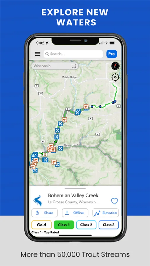• DISCOVER: Color-coded stream ratings allow you to find quality fly fishing spots at a glance