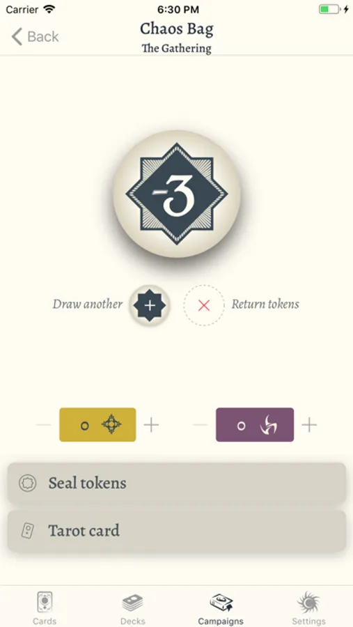 • Draw tokens from the digital chaos bag, and calculate the odds of success before you do.