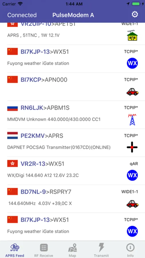 "PulseModem A" is an APRS client, that reads and reports APRS location and messages.