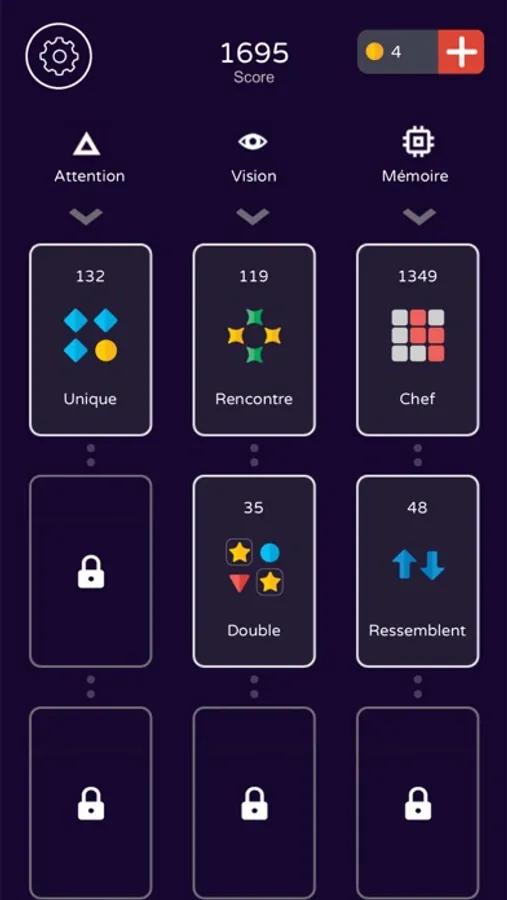 Each level tests your cognitive skills and mental abilities. You can track your progress after each level.