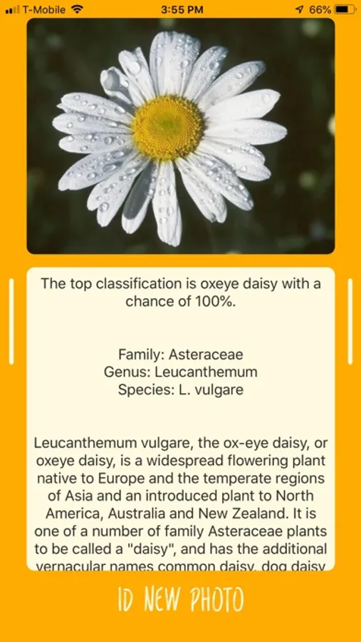 The app provides a photo of the flower, the family, the genus, the species, and a Wikipedia description about the flower. Daiscover is capable of identifying 103 different types of flowers with more to be added soon.