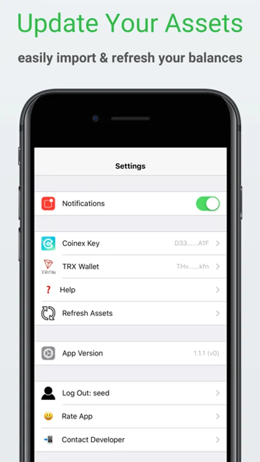 PLEASE NOTE: This app does not generate passive income on its own, it only tracks balance changes from external sources. You must already possess a CoinEx or TRX account to track your assets. Also, if you manually move assets or make trades the app does not currently have a way to distinguish between airdrops/dividends and manual changes to balances.