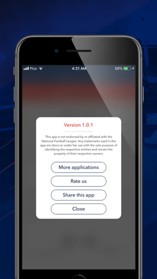This app is not endorsed by or affiliated with the National Football League. Any trademarks used in the app are done so under fair use with the sole purpose of identifying the respective entities and remain the property of their respective owners.