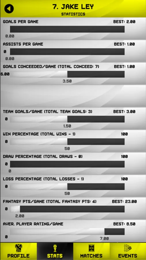 Matches - keep records of all games including goal and assist information, player ratings, line-ups, substitutes, formations and more!