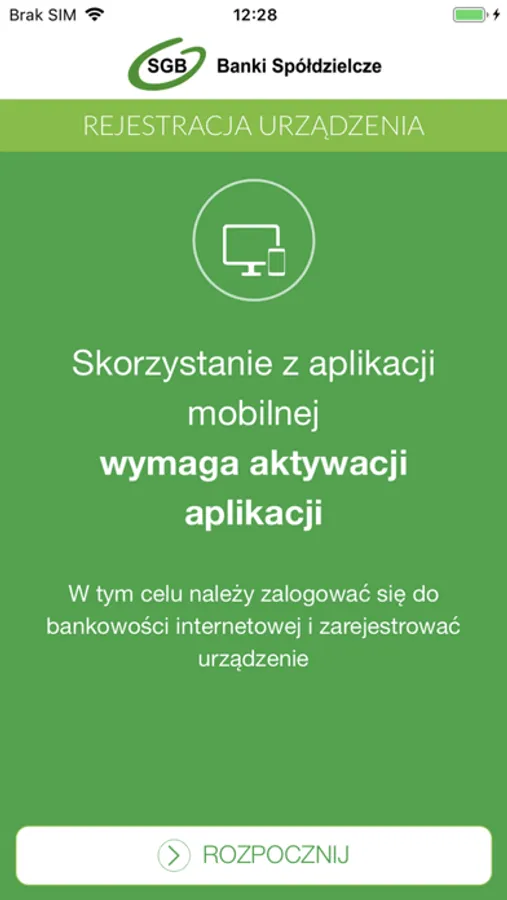 Przy pomocy identyfikatora i otrzymanego hasła logowania zaloguj się za pośrednictwem bankowości internetowej, nadaj nazwę swojemu urządzeniu autoryzującemu a na ekranie zaprezentuje się kod aktywacyjny, który musisz wprowadzić na urządzeniu autoryzującym celem powiązania urządzenia z bankowością elektroniczną. W pobranej aplikacji mobilnej zarejestruj urządzenie i przepisz kod aktywacyjny, dalej przepisz kod weryfikacyjny przesłany za pomocą SMS, ustal swój unikalny PIN, którym będziesz logować się do aplikacji Token SGB. Pamiętaj, żeby nie ujawniać nikomu numeru PIN, nikt z pracowników Banku nie będzie Cię o to pytał.