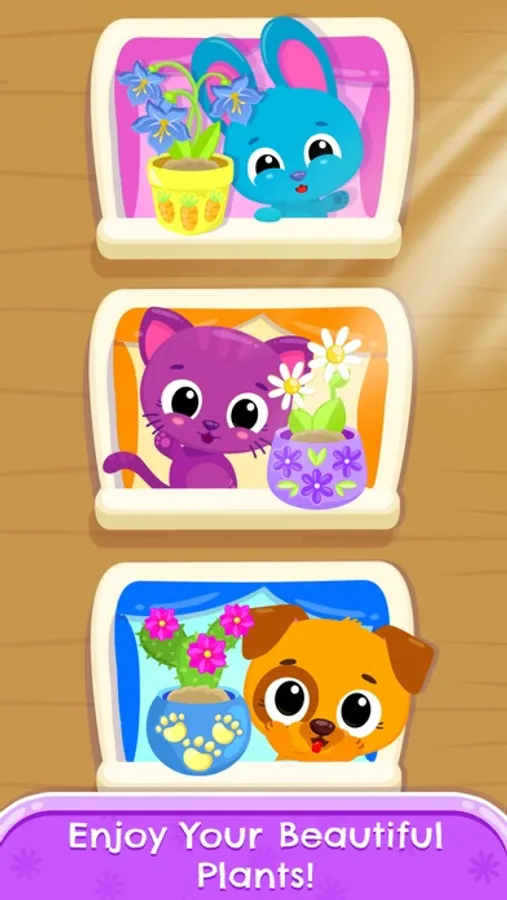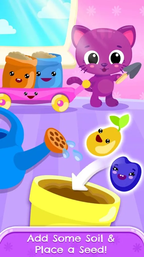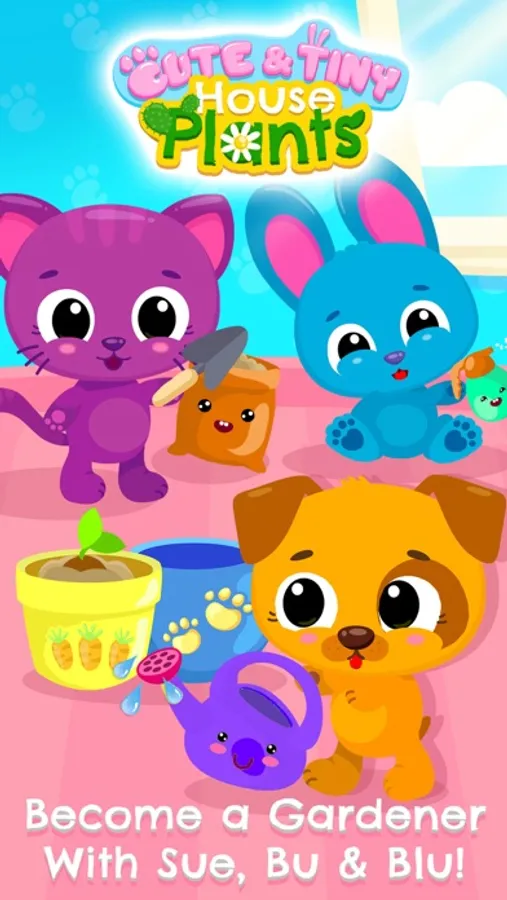 Teach your little ones basic plant care with Cute & Tiny House Plants! Become a gardener with the most adorable baby pets: kitty Sue, puppy Bu and bunny Blu! Help them turn a tiny seed into a big beautiful and healthy flower!