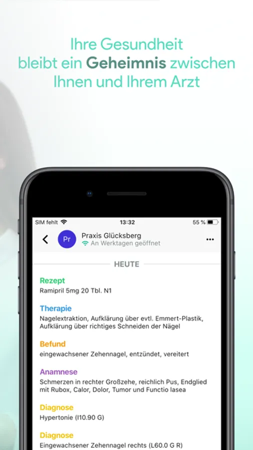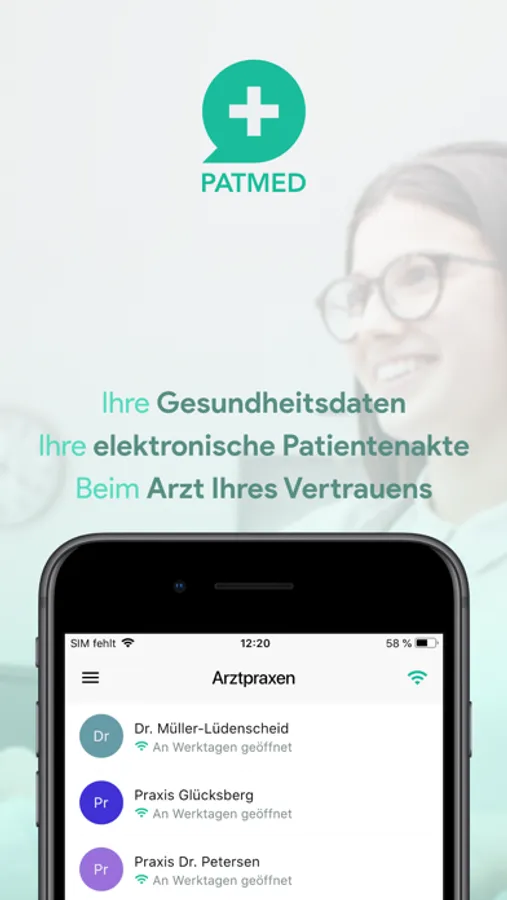 Attention: The app can only be used in conjunction with medical practices who have already set up a connection to PatMed. Please consult your doctor's office.