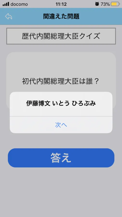 ●間違えた問題の答えを確認できます。(確認後データは消去されます。)(24時間後に間違えた問題データはすべて消去されます。)