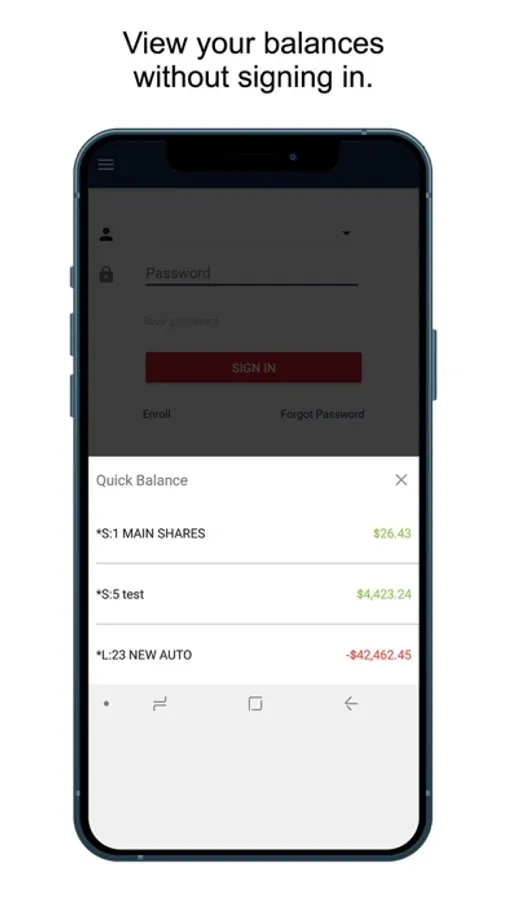 • Use the Quick Balance feature to view your balances without logging into the App.