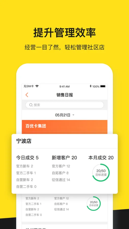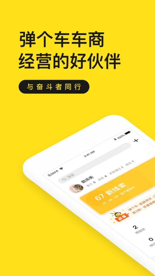 弹个车商家版是由浙江大搜车融资租赁有限公司隆重推出,为弹个车经销商与社区店提供弹个车业务管理的系统软件。产品致力于为弹个车经销商与社区店提供完善的客户管理,营销管理,数据报表等功能,真正赋能弹个车经销商与社区店,是经销商与社区店高效的移动工作平台。