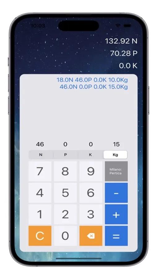 Inserire il titolo della concimazione, successivamente selezionare il numero di kg distribuiti l'unità di misura e vi verrà restituito il numero di unità/Ettaro per ciascuno dei componenti della concimazione.