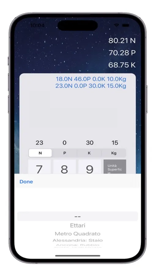 Calcolo unità concimazione permette di stabilire quante unità di azoto fosforo e potassio vengono distribuite durante la concimazione in relazione alla superficie e convertite in unità/ettaro.