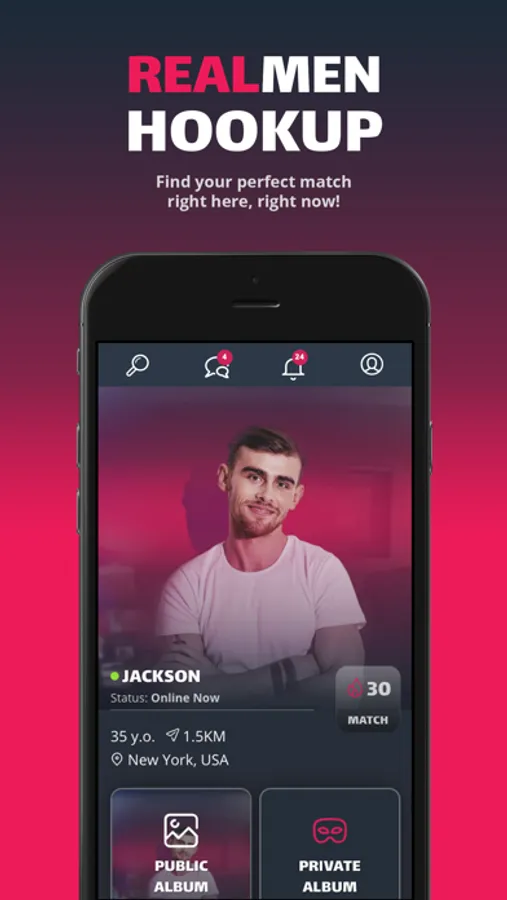 RealMen is innovative and smart web platform for gay male dating, developed by dedicated team with long experience in the industry. The intuitive and sleek design makes RealMen easy to use and provides you with seamless experience on all devices. You can search, chat and share media with your buddies and dates - RealMen gives you for free all the features that you have to pay for usually.