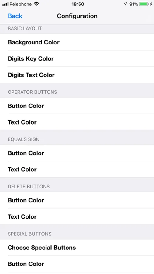 * Choose your own colors for various features, including background, number keys, function keys, and solution window - each of these features can have its own color