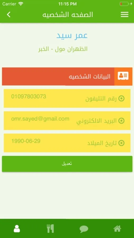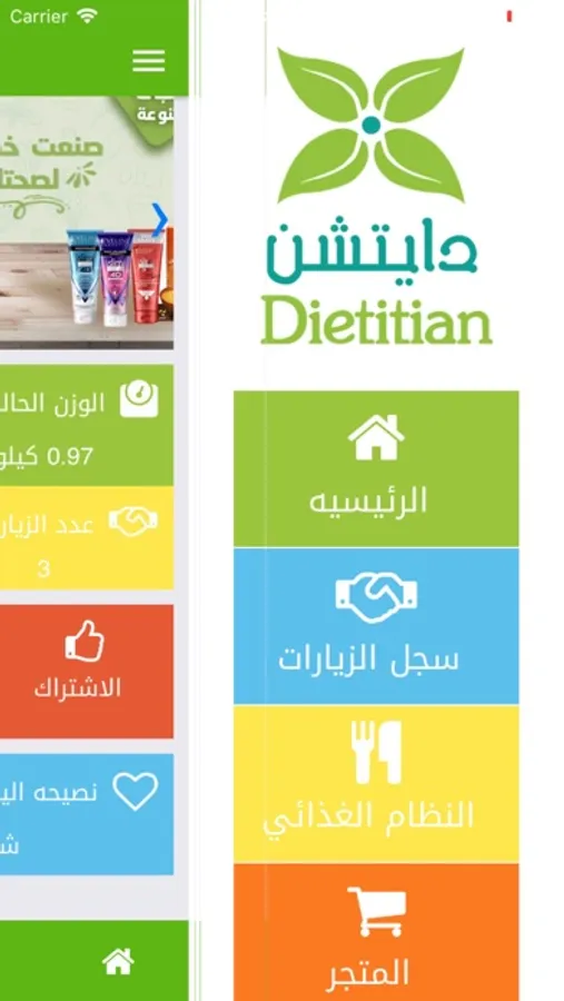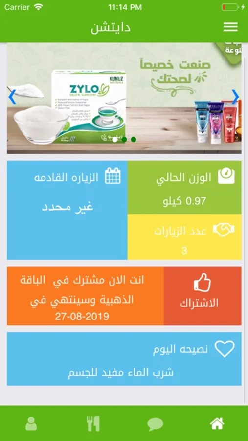 ويستطيع المستخدم التحدث الي اخصائي التغذيه مباشره عن طريق الشات والاستفسار ومتابعه النظام الغذائي معهم