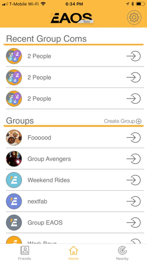 The EAOS intercom app provides group communication capabilities. It is complementary to your SlimBuds purchase. The app allows users to create groups and connect them with one tap.