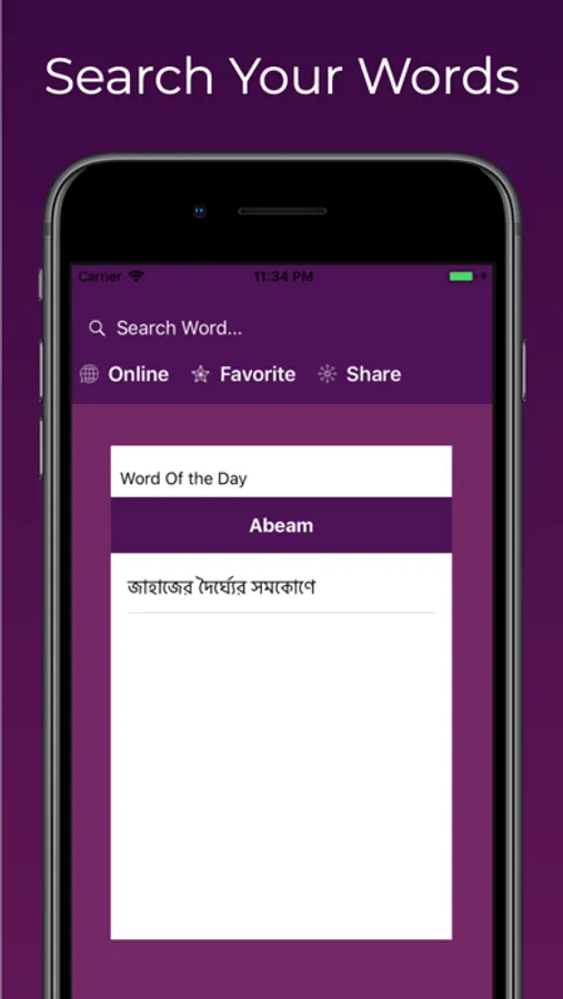 - You can search both English and Bangla words. You can search words directly from "Internet Browser" or other Applications by using Sharing option