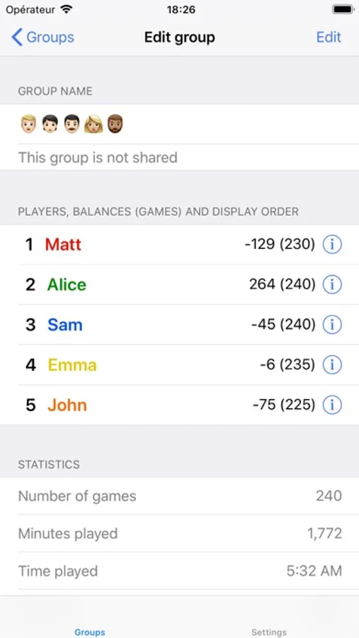Gain Stat allows you to create groups of people who usually play together. The advantage of Gain Stat is to be able to follow the evolution of its earnings while having the opportunity to be sometimes absent and sometimes have guests.
