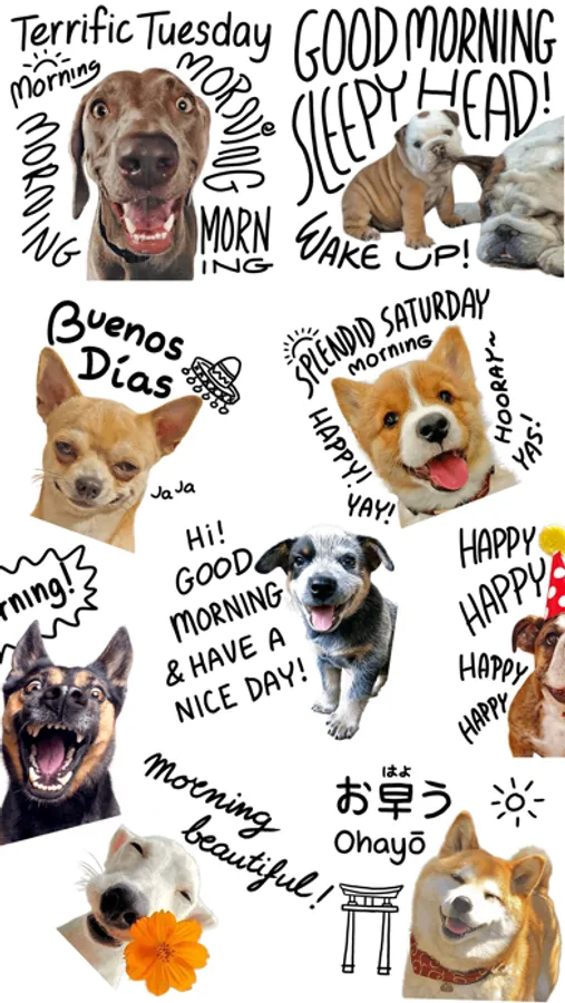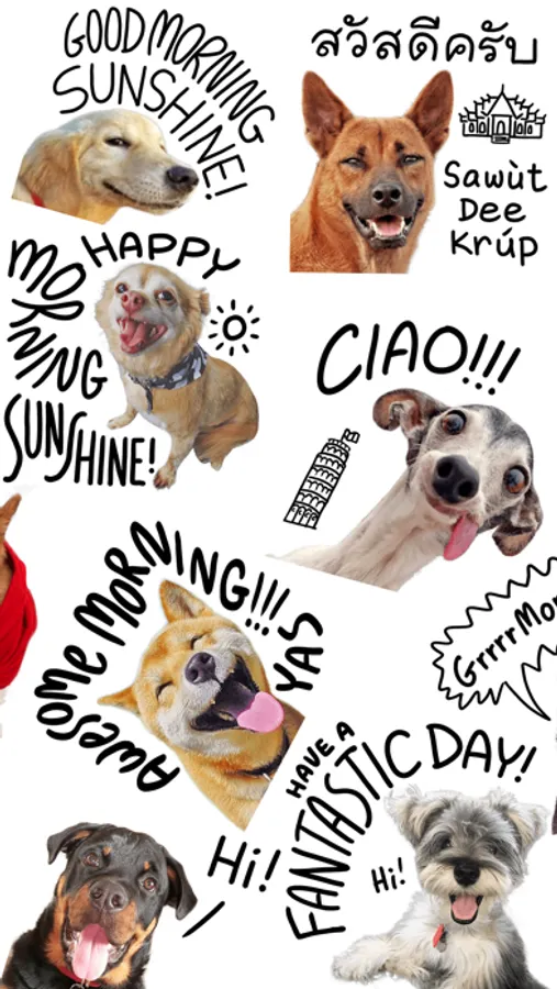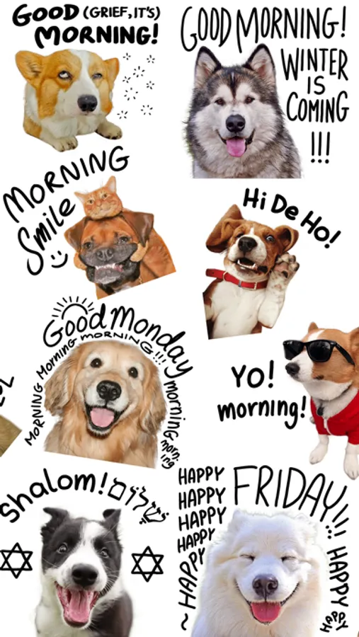 Now contains 49 Good Morning Dogs Stickers! More stickers coming soon! From the creator of CatNap: Sleepy Cats Stickers, now back with a brand new sticker pack but totally opposite in every possible way!