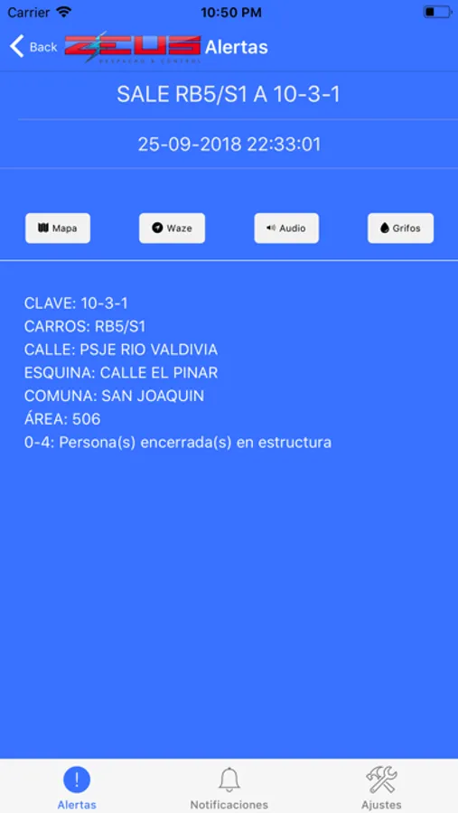 APP de notificación de despachos de bomberos, del SaaS Zeus.