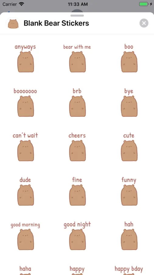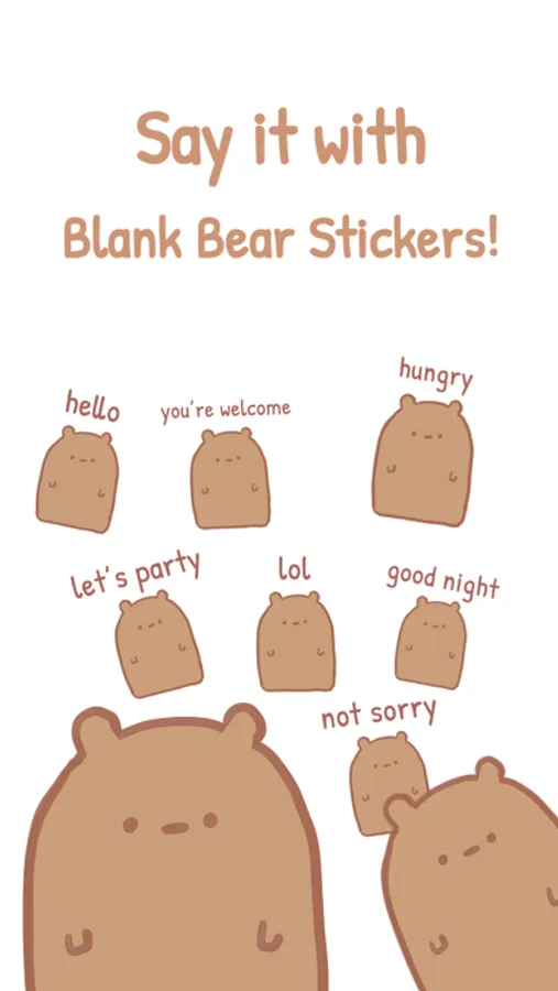 Use over 140+ stickers to share and send! Leave us a review to request more phrases, new stickers and sayings for Blank Bear!