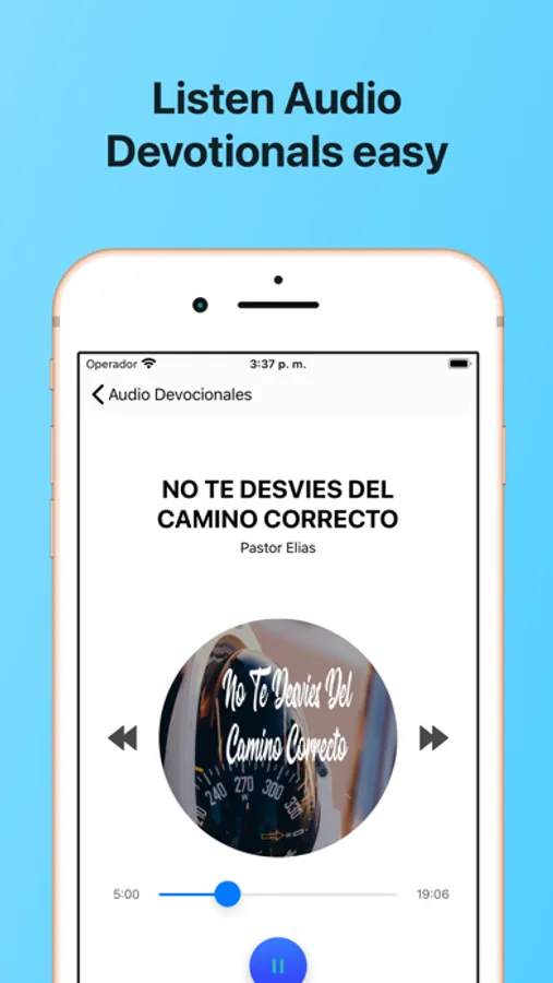 Listen to devotionals only in Audio as a play list, with the function of playing in background mode you can listen when your device is locked.