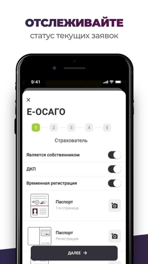 У нас отличная новость! Больше этого делать не надо. Достаточно просто сфотографировать документы и указать ключевые параметры страхования. Набранная заявка на полис Е-ОСАГО появится в Вашем кабинете автоматически.