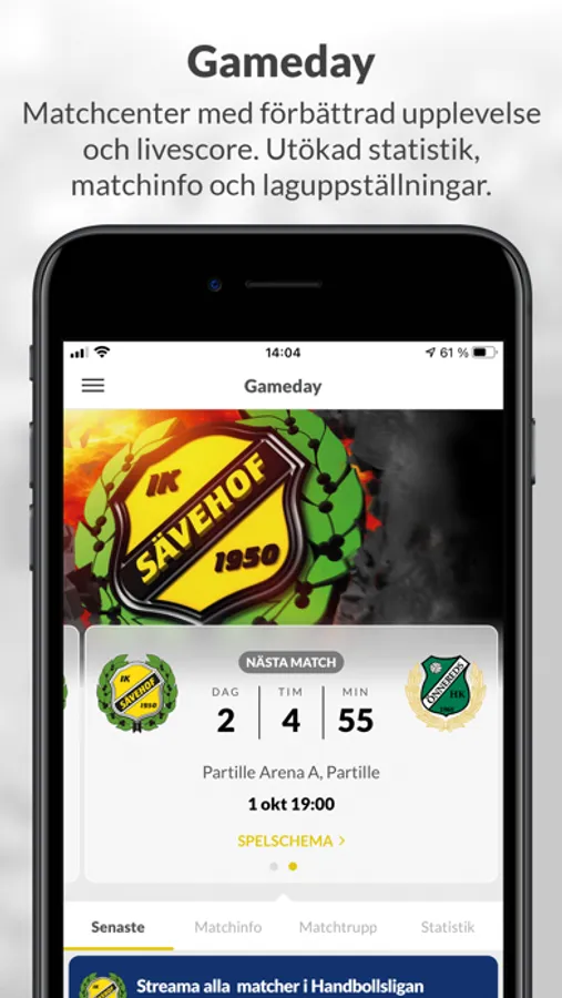 Gameday är Sävehofs officiella app för dam- och herrlaget. Här hittar du senaste nyheterna, intervjuer, statistik på spelare, laguppställningar, aktuella trupper, spelprogram och resultat. Följ matcherna via livescore både på hemma och bortamatcherna.