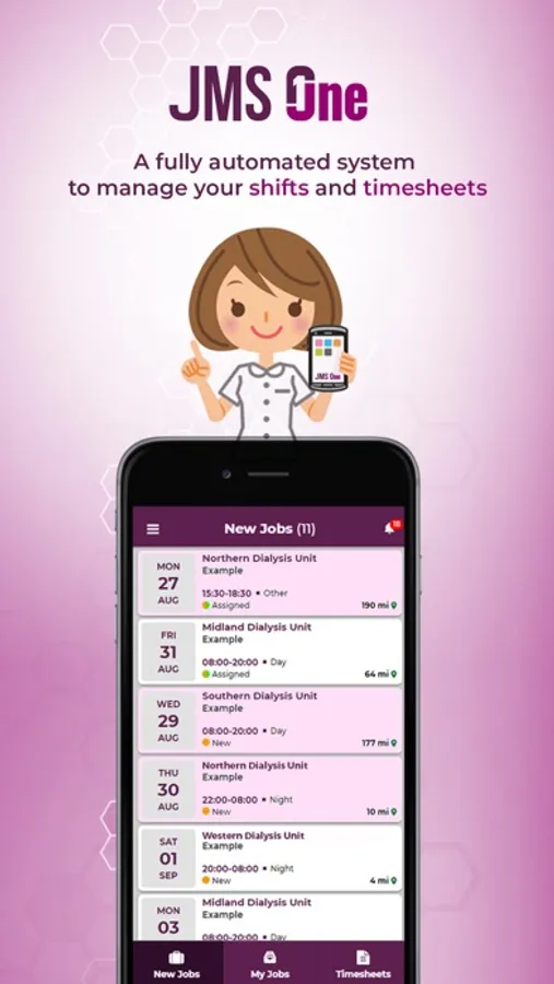 The JMS One app allows you to easily find and manage jobs with your preferred employers. With new jobs posting live to our app, a JMS One user can accept new jobs with a single tap. You will receive real-time notifications for new jobs and status updates for your booked jobs. You can also submit and track your timesheets using this app.