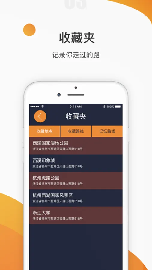 4.打开收藏夹,回家、公司、商店等一键导航。